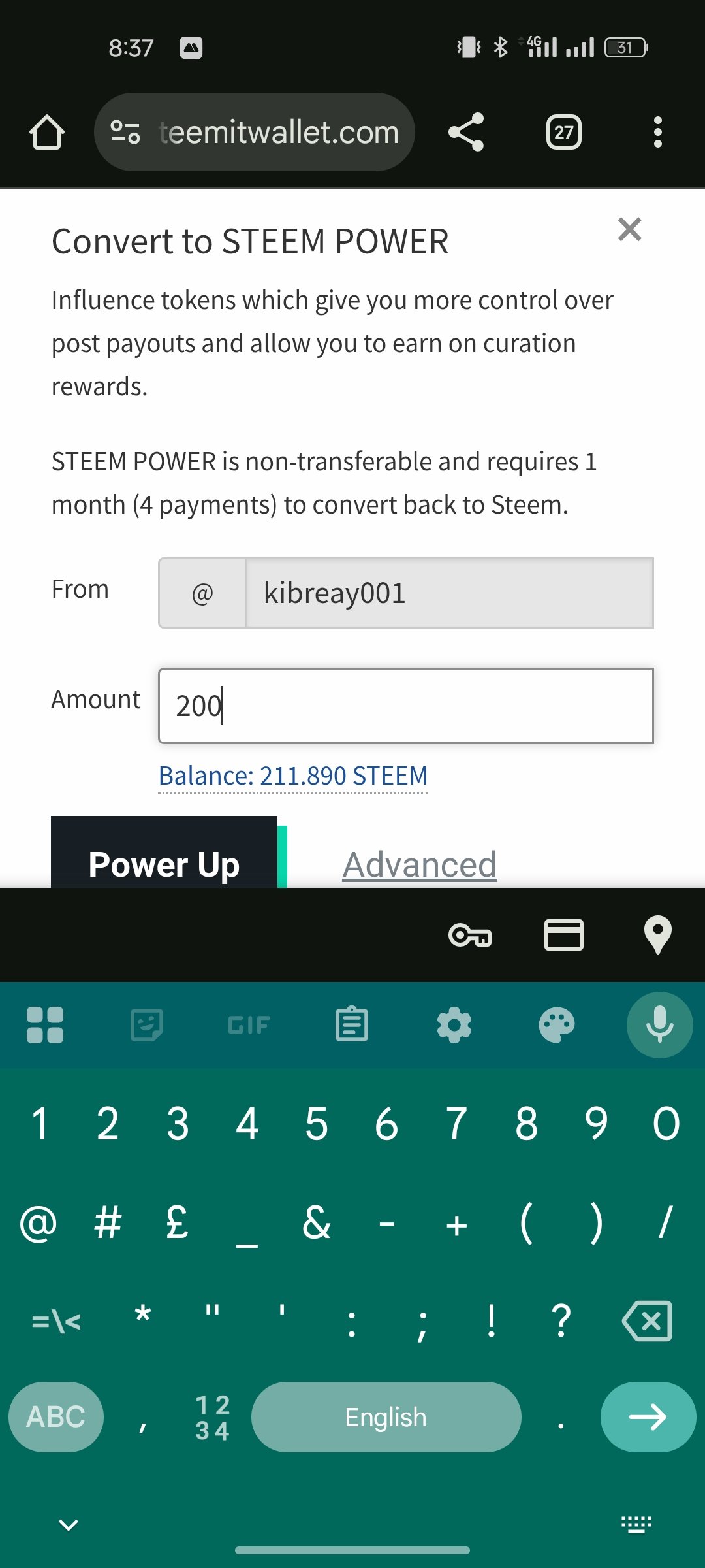পাওয়ার আপ পোস্ট শেয়ার করার আগে আমি আমার স্টিমিট ওয়ালেট এর স্ক্রিনশট অনেক সুন্দর ভাবে আপনাদের মাঝে শেয়ার করেছি। আপনার উপরে ছবির দিকে লক্ষ্য করলে দেখতে পারবেন। আমার স্টিমিট ওয়ালেটে স্টিম রয়েছে ২১১। আমি সেখান থেকে ২০০ স্টিম পাওয়ার আপ করতে যাচ্ছি।