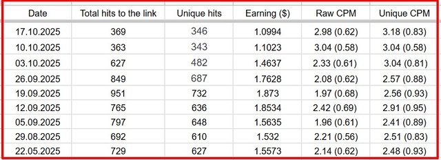 I primarily earn by sharing the Leadsleap Co-op link. We receive updates on our co-op earnings every Friday, based on the number of visitors to our link over the previous week (from Friday to Thursday). Below, I have shared the earnings from last week (10.10.2025 to 16.10.2025).