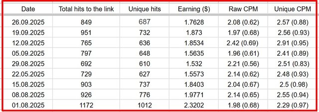 I primarily earn by sharing the Leadsleap Co-op link. We receive updates on our co-op earnings every Friday, based on the number of visitors to our link over the previous week (from Friday to Thursday). Below, I have shared the earnings from last week (19.09.2025 to 25.09.2025).