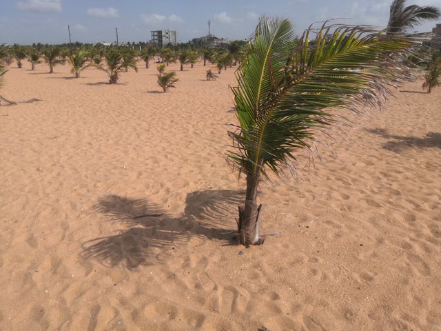 I was enjoying the exercise walking at regular interval each steps I put in the sand. One hour later I arrive at the place where you can see many small palm trees growing strong to offer shade to all looking for protection from the sun.
