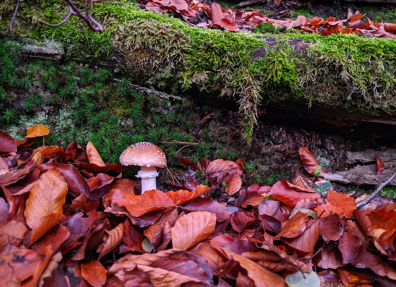Up and down little hills into the forest. And look, there's the first pretty little mushroom for #fungifriday.