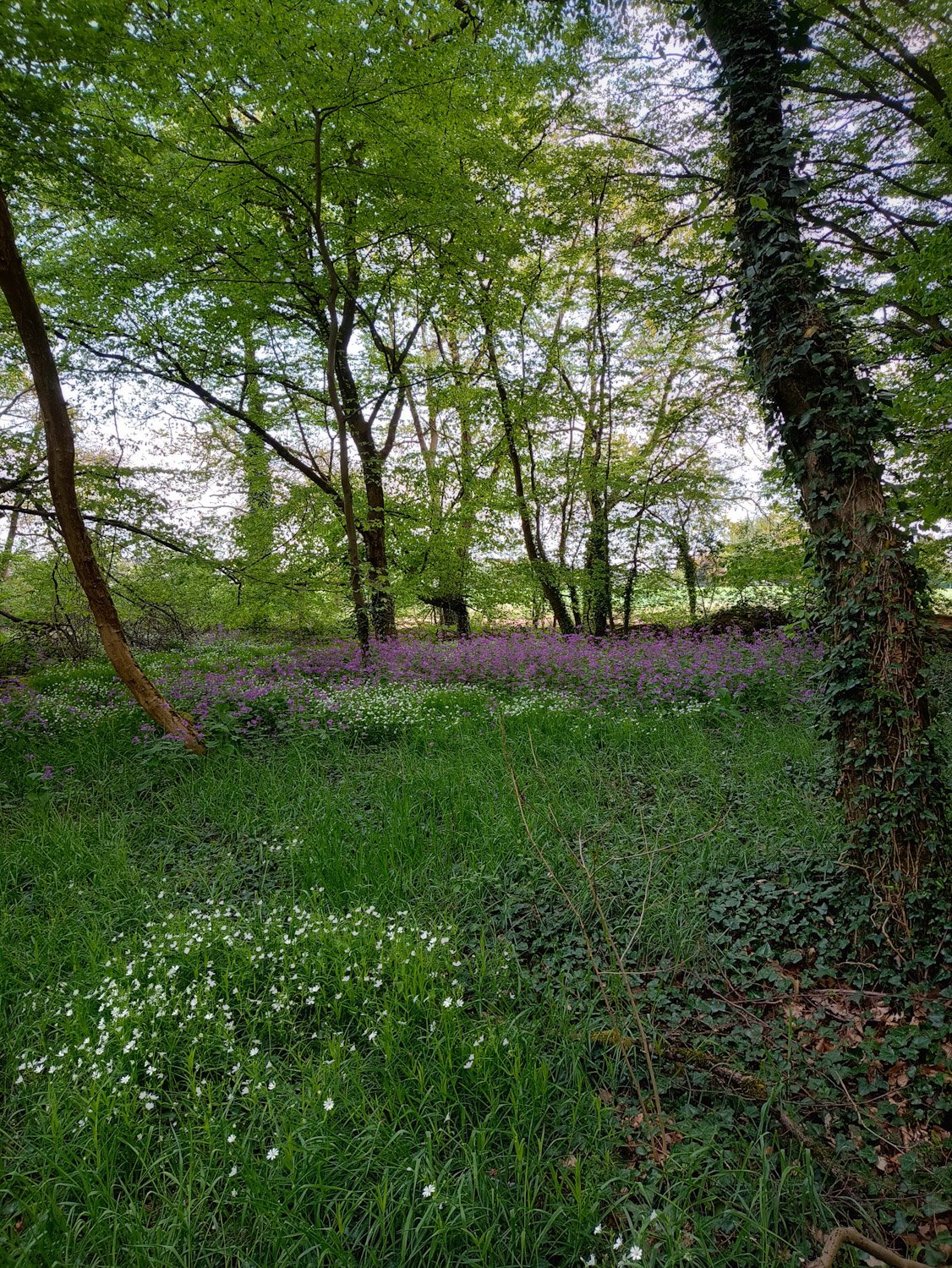 I stumbled across a green micro oasis in the grey concrete desert construct to travel conveniently, at unnatural speeds, in steel cages with rubber wheels.