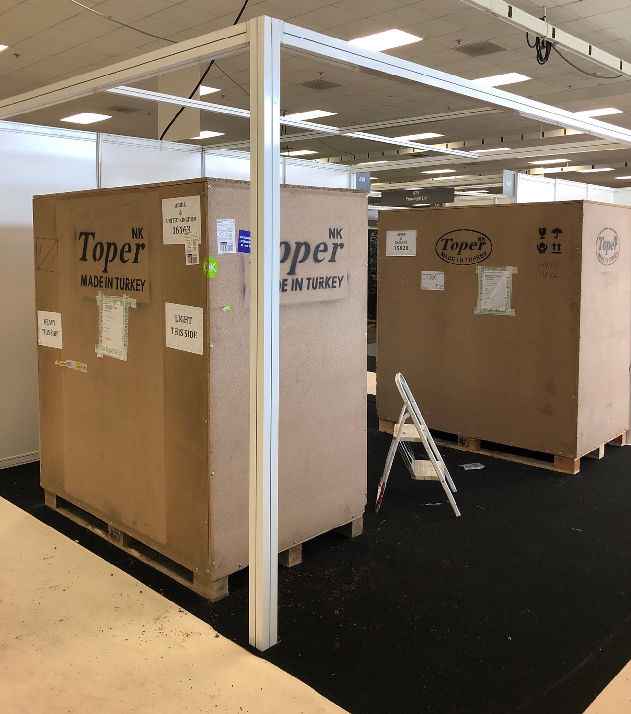 Monday afternoon I found the stand like this, with two crates on it. After two days of exhibition the roasters are back in their big boxes ready to be shipped back to my warehouse. You have at least 8 screws per panel keeping the crates together - so even with a power driver that’s a lot of screwing! And one of the crates went to storage - so it needed opening - the stuff packing into it and closing again.