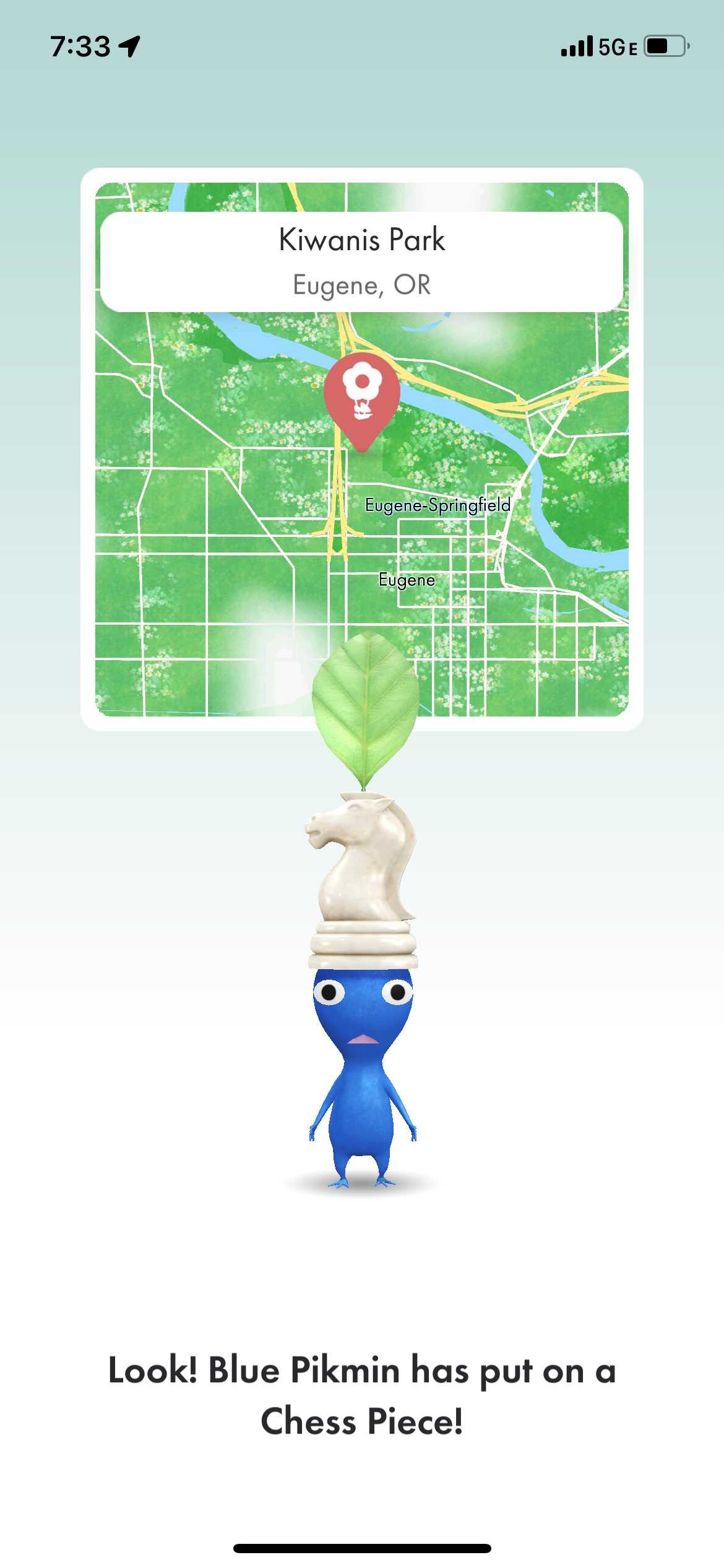 I took my morning walk to Alton Baker Park and back. In Pikmin Bloom there is a chess-themed event running, so I was able to get a few pikmin with chess-piece decor items.