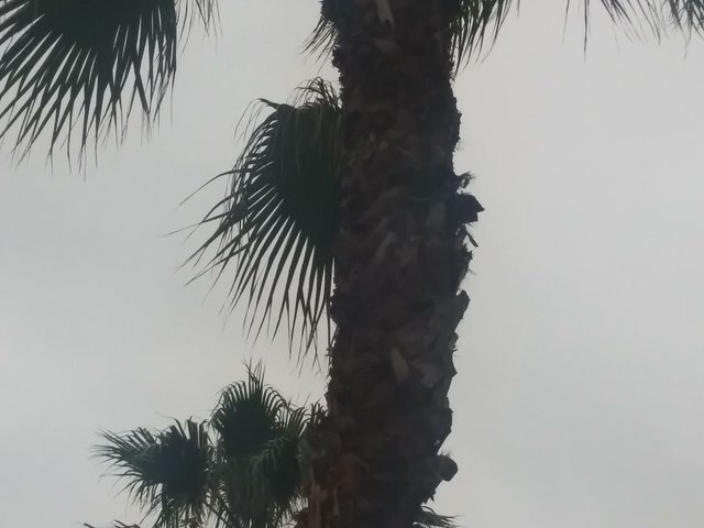 It is hard to see on this picture because it was taken with my cell phone. But up in that palm tree is a woodpecker. I was walking by and I heard. Tapping away. So I took a look and I found it. But unfortunately with only my cell phone take the picture wasn't very clear. It was a beautiful bird though. As far as my steps, once again, I got the 10,000 in spite of getting rained on for the last poets say about 20 minutes. .
