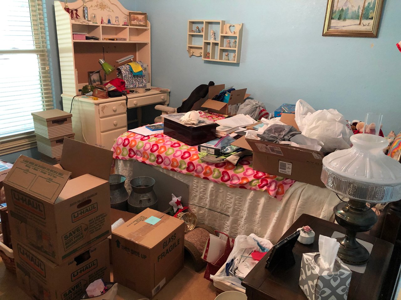Yikes, it’s just become my storage room! I’ll be working on this room a few days! Time to give away or sell some things! It has a combination of boxes of inherited items and my daughter’s childhood stuff!!