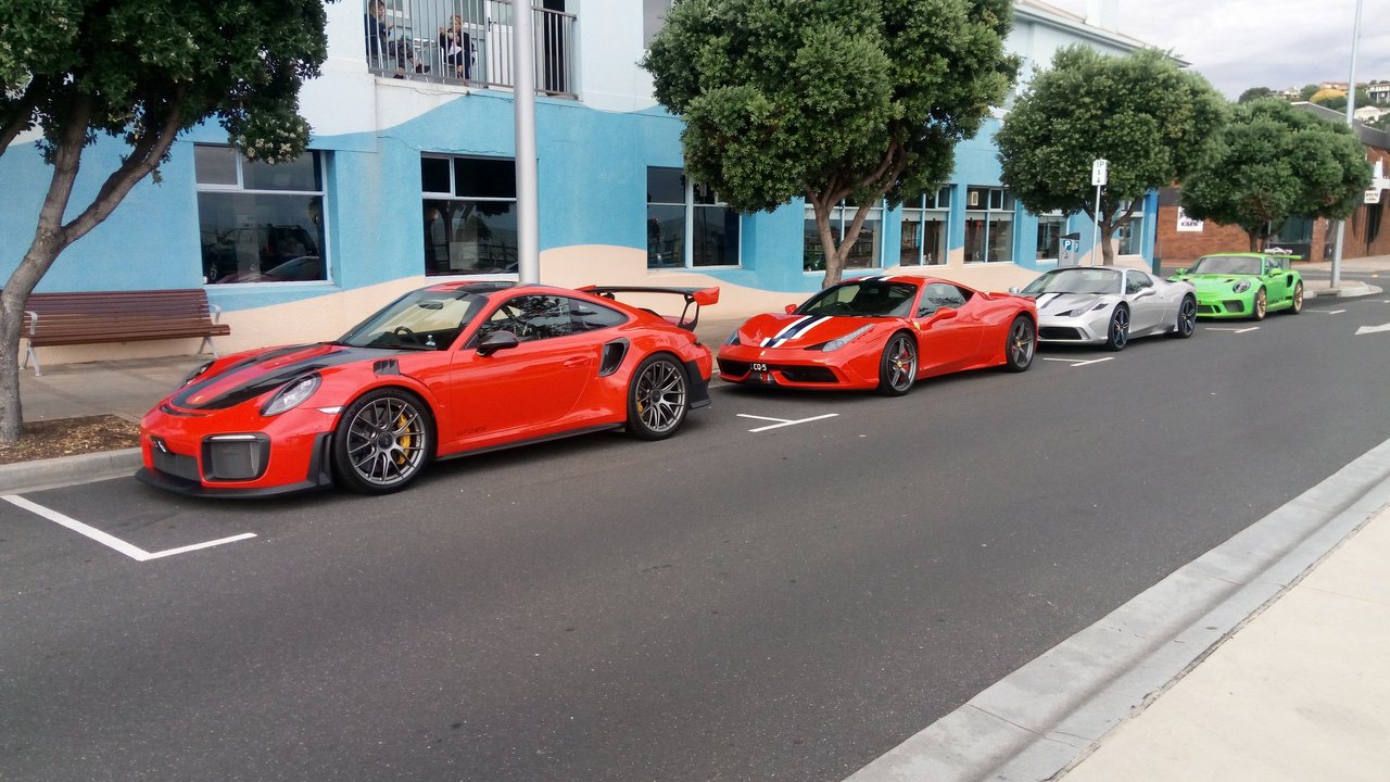 Went for a walk this morning in Burnie and came by these cars two Porsche and two Ferrari's that are visiting the state of Tasmania.