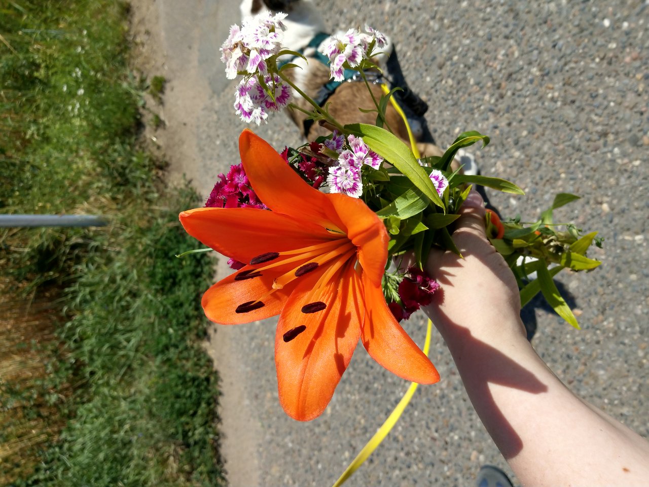 Heute musste ich bis 13 Uhr meine wertvolle Lebenszeit auf der Arbeit verbringen. Danach hatte ich noch den halben Tag frei. Ich war natürlich wie immer eine große Runde Gassi mit dem Hund, danach hatte ich noch Zeit für ein schönes, ausgiebiges Nickerchen. Heute ist es zum Glück nicht so heiß wie die letzten Tage auch der Wind hat dazu beigetragen, dass es sich kühler anfühlte. Die Blumen auf dem Bild habe von einem nahegelegenen Feld gepflückt. (Natürlich gegen Bezahlung )