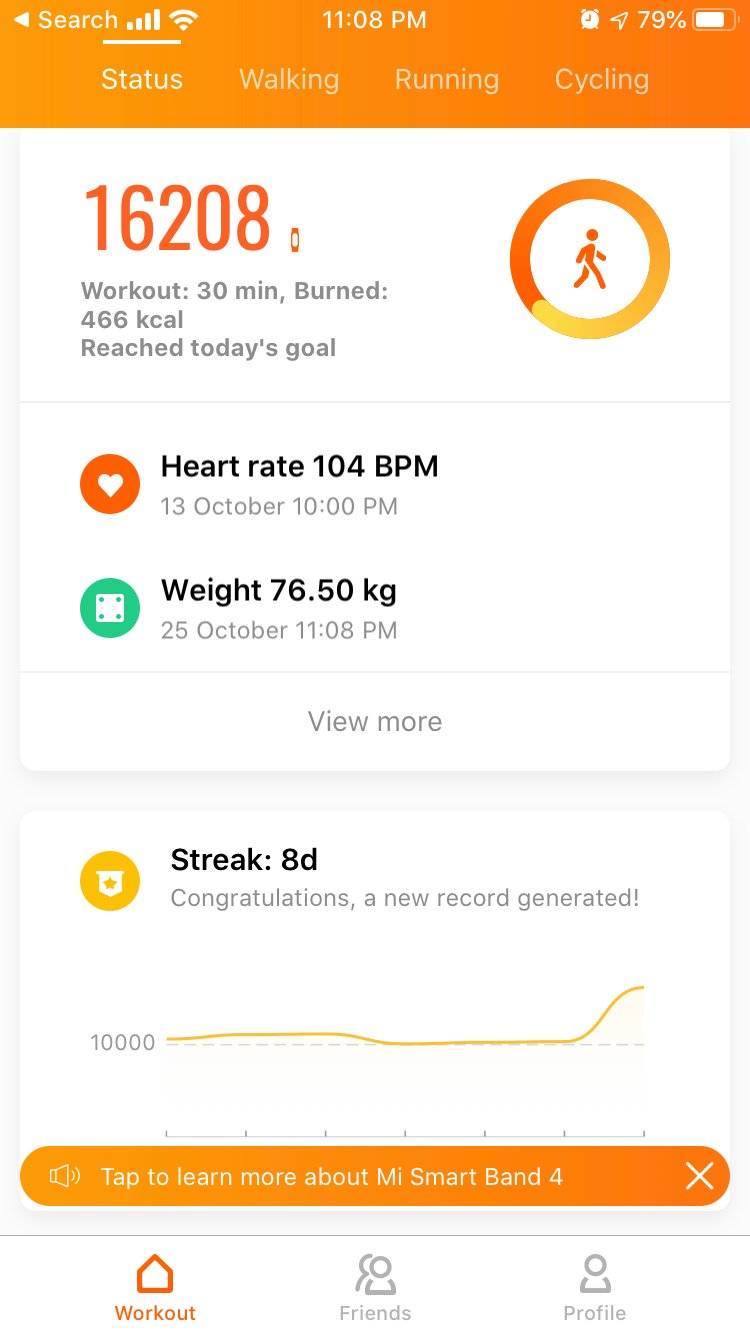 Hopefully the MI band will be added to the fully supported @actifit fitness trackers soon so you get paid for your full steps!!