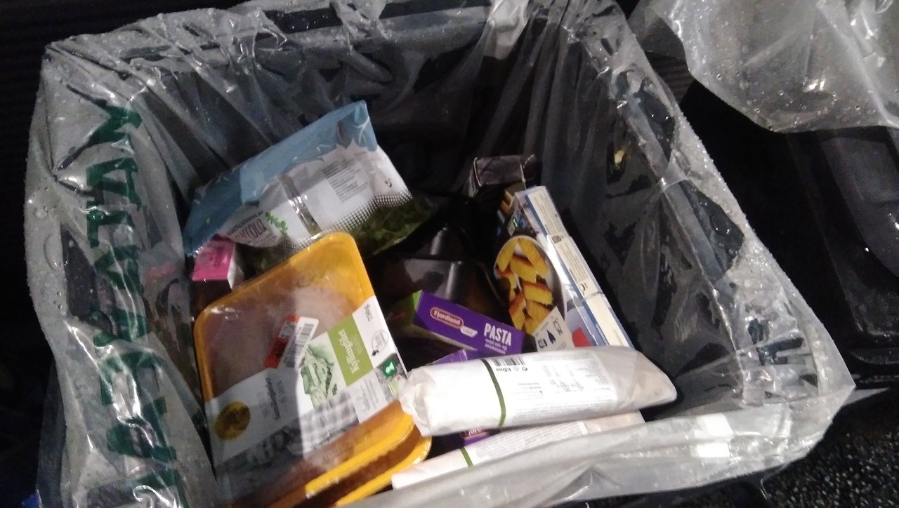 A couple packs of chicken breasts 20euro worth, sandwhiches and wraps, and pasta meals..