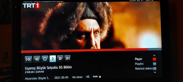 In the evening on youtube via smart tv watching turkish historical action drama series "Uyanış Büyük Selçuklu"-I finished to watch episode 30 and started to watch episode 31.