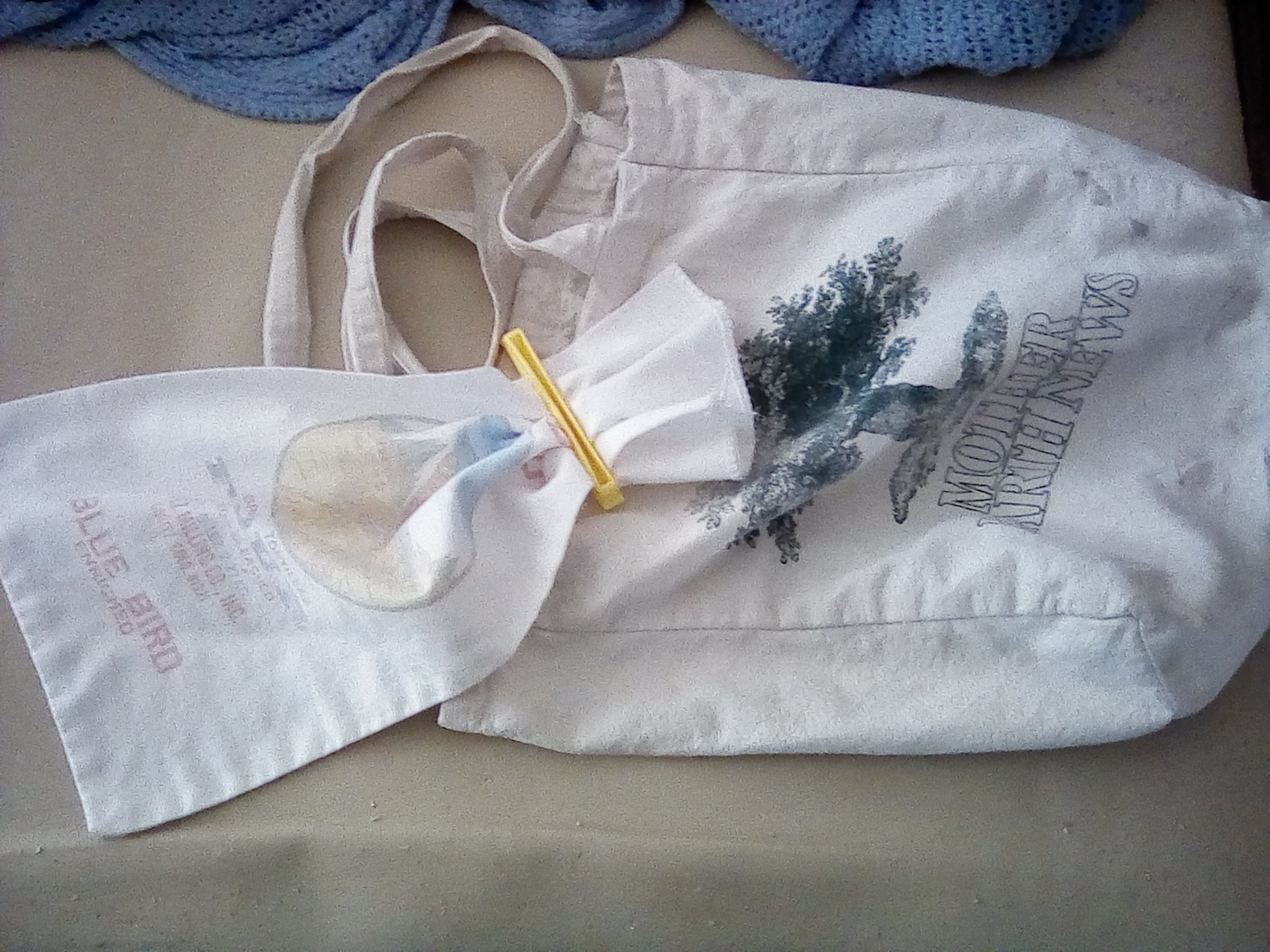 So I'm going to edit this in Steemit because I have a story to tell, lol. But YAY Actifit with photos! My thrilling photo today is my bags getting ready to go to Sprouts ...twice. X) I also got some steps in doing my #litterwalk (see previous post).