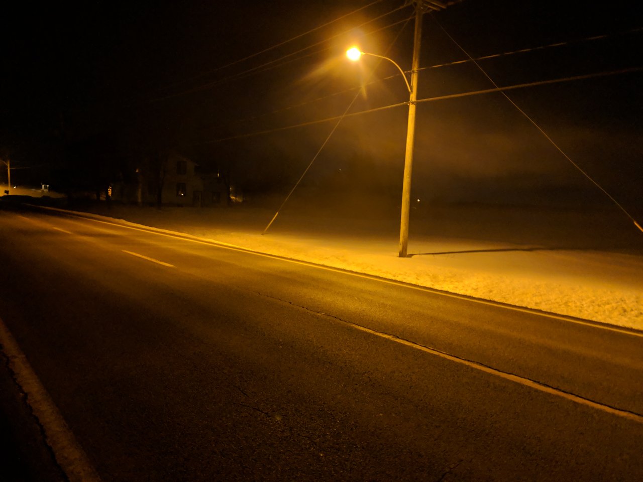 Une marche de deux heures aux petites heures du matin parce que j'étais incapable de dormir. En plus il y avait du brouillard! Pas de coyotes cependant. :p
