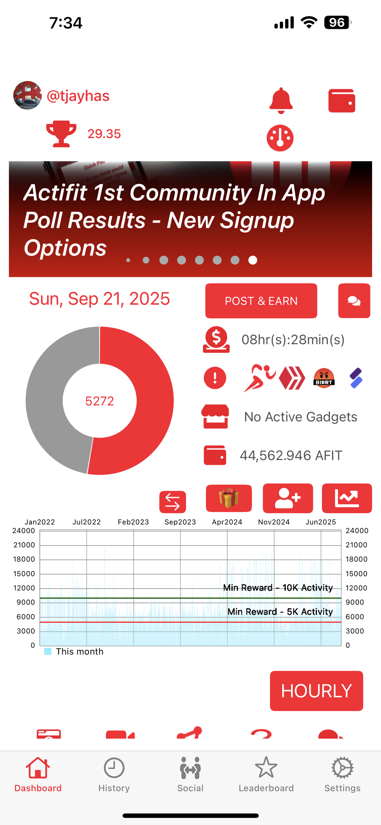 My Actifit Report Card: September 21 2025tjayhas (69)in #actifit • 15 days ago 요즘 주말만 되면 그냥 깔아져서 어디 나가는 거 자체도 힘듭니다. 오늘도 저녁을 너무 늦게 먹어 나가서 소화도 시킬겸 걸어보려고 했지만, 계속 이것 저것 하다가 결국 나가지도 못하고 있습니다. 내일부터는 억지로라도 점심에 GYM에 가서 운동도 하고 컨디션을 끌어올리고, 주말 피곤해도 억지로라도 라운딩이라도 가야겠습니다. 이번 한주는 힘찬 한주가 되길.. #sportstalk #movetoearn #move2earn #kr #hive #zzan