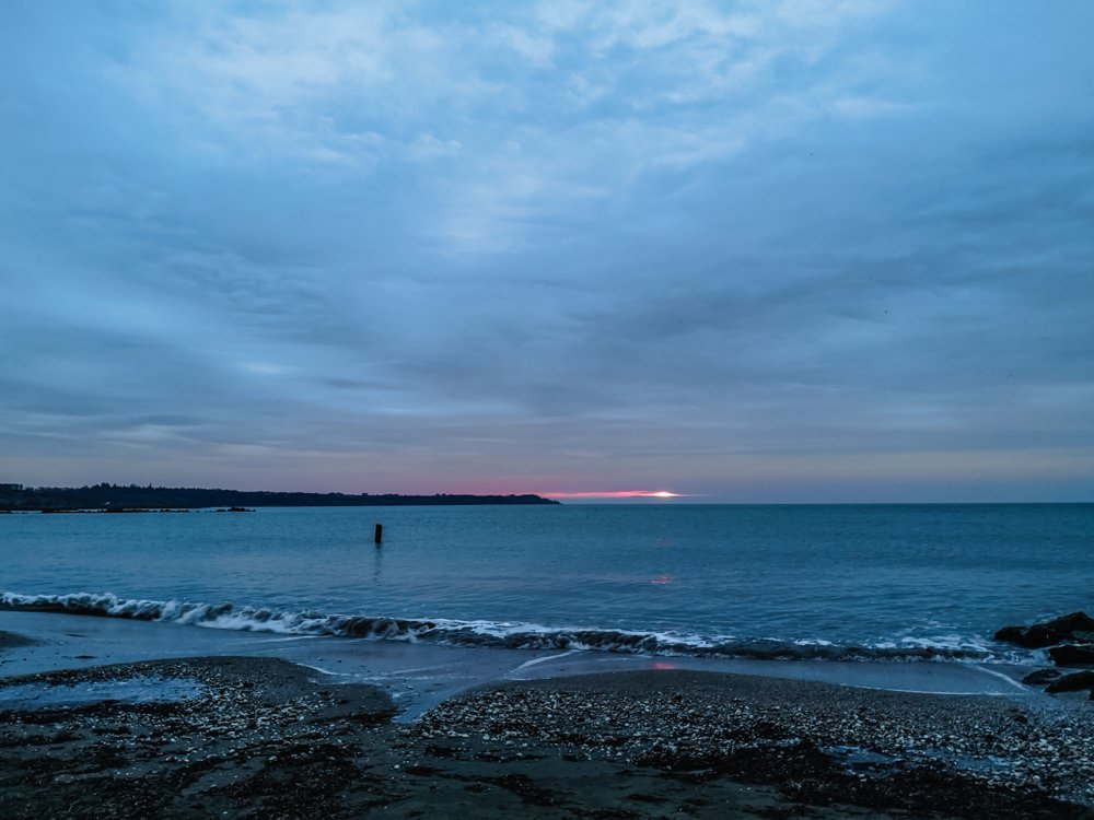 A small part of the sun was able to show up for a moment, and the sky around it turned in pink colors.