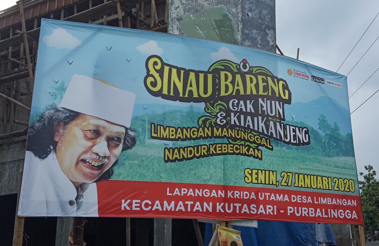 Rencanane neng Desa Limbangan, Kecamatan Kutasari, Kabupaten Purbalingga arep deselenggarakna Pengajian "Limbangan Manunggal Nandur Kebecikan" sing arep derawuhi neng Bapak Cak Nun.