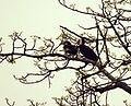 The statue of Dhanesh roams on the edge of evergreen forests. In pairs or small groups it can be seen. They are largely dependent on fruit trees for food. Their diet consists of creampie fruits; Sometimes small reptiles and small animals tend to eat. When they are flying from tree to tree, they call: Ukh-haik .... [2]