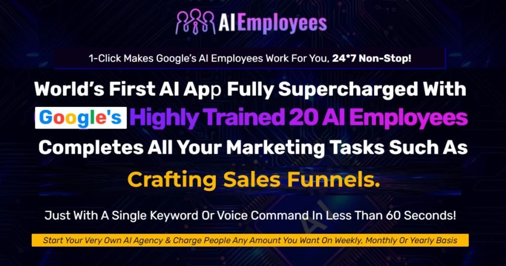 This tool harnesses the power of Google’s latest AI technologies, allowing you to create and sell high-quality marketing materials in less than 60 seconds. The AI employees, including specialists like web developer Rhyan Anderson and sales funnel expert Olivia Roberts, work around the clock to boost your business efficiency.