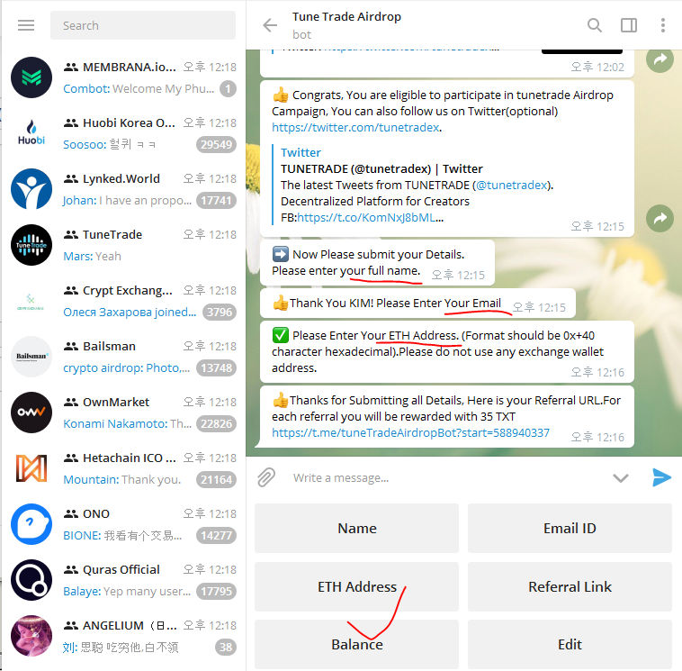 - 텔레그램 아이디 입력 @ 포함 (+50000MTB)