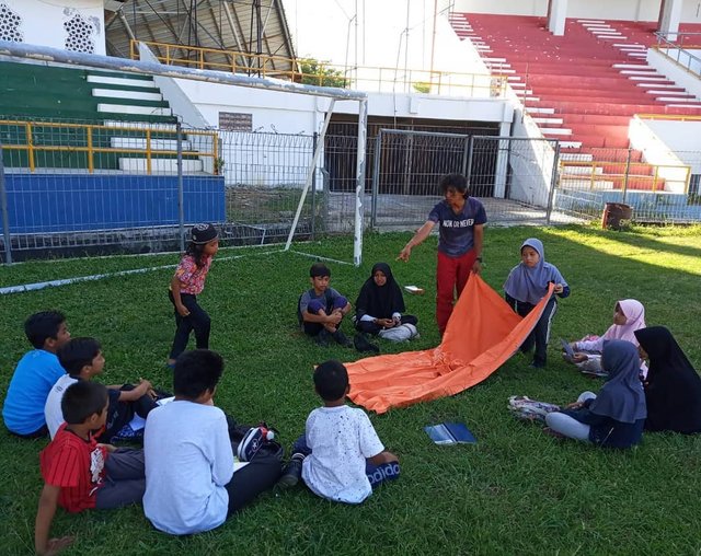 . "Akib ketua kelompok, Nda, jadi ada tanggung jawab memfotokopi kertas-kertas tabel ini untuk kawan-kawan. Kawan-kawan Akib mirip seperti kawan sekolah kemarin. Ada yang mirip Luthfi, seperti Ja'far, ada yang kayak Raja. Seru-seru teman Akib. Waktu Om Yuyun menjelaskan tentang mengukur centi batang pohon dan menyalin ke dalam tabel, Akib kurang ngerti tapi ada kawan yang mau menjelaskan ulang...Akib langsung ngerti." .