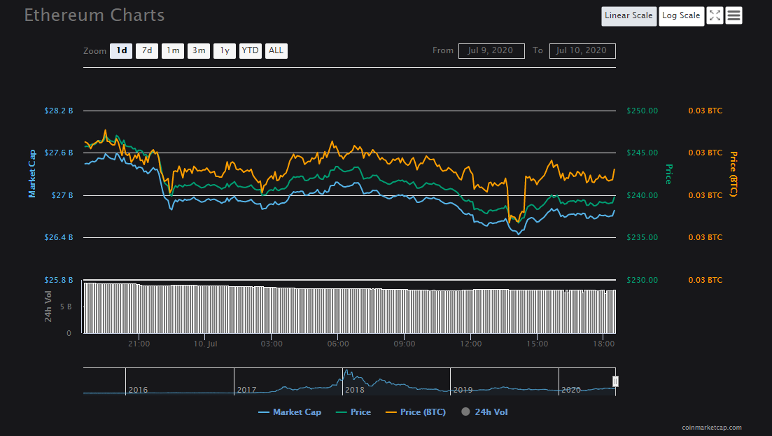 Ethereum started the day by being rejected from the $240 level, therefore triggering a fall towards the $228 level. The second-largest cryptocurrency by market capitalization managed to stop its price drop at $229 and slowly start to recover and consolidate. While the price is on a slow path towards the upside, the ultimate short-term direction of Ethereum is unknown.