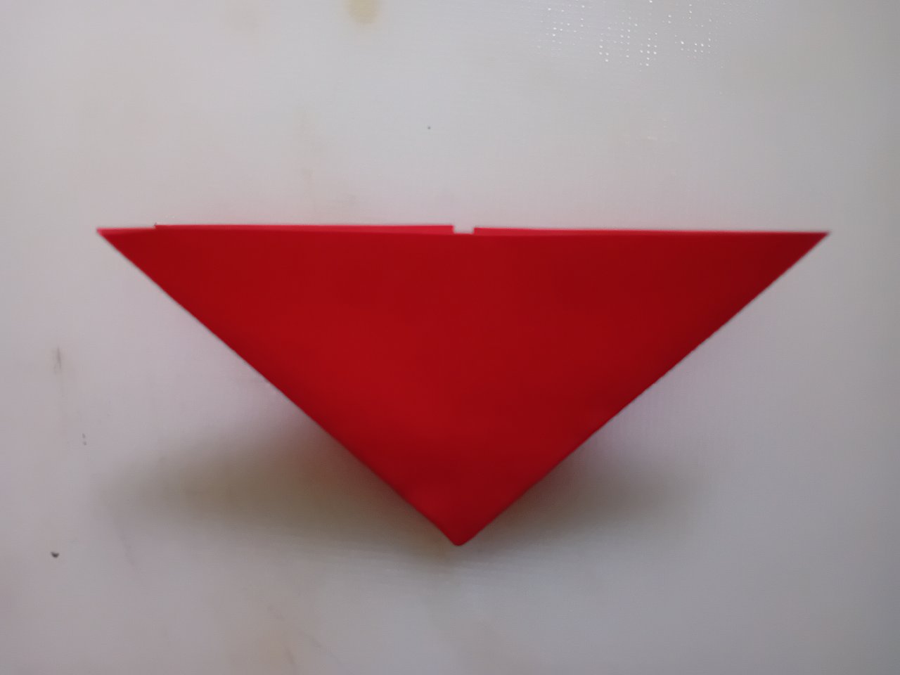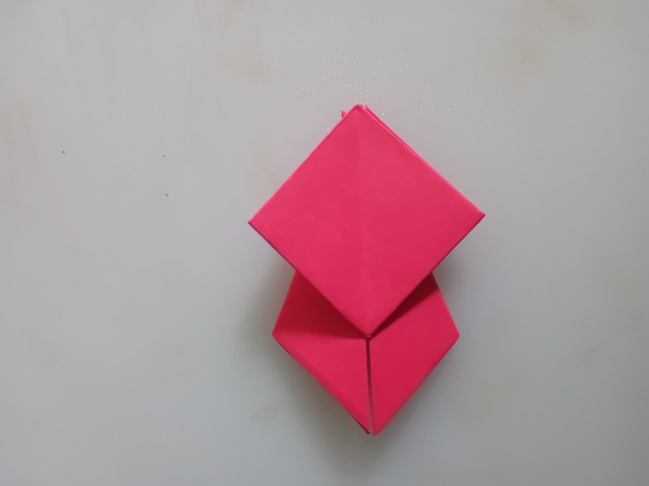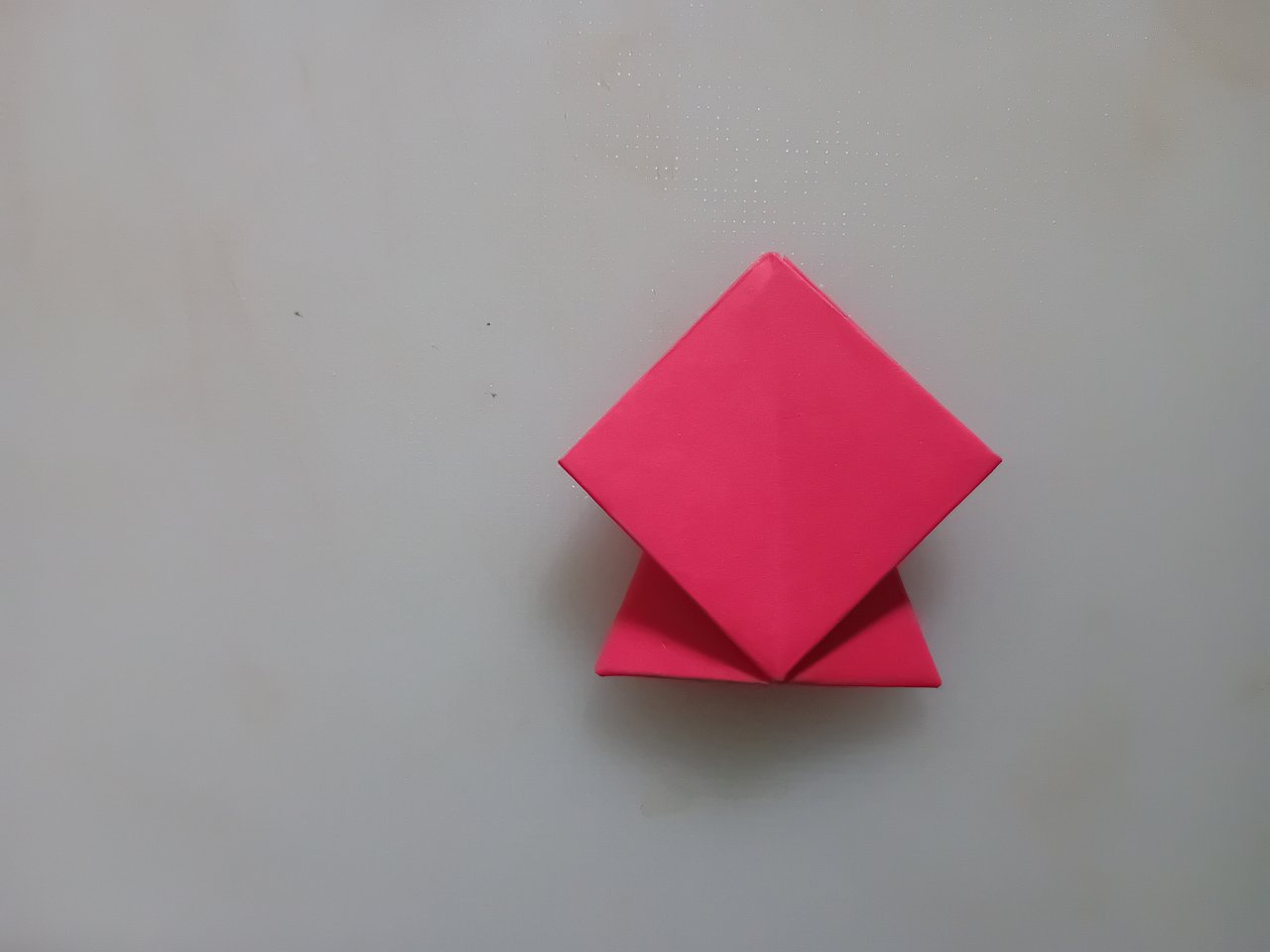 প্রথমে আমি লাল কালারের একটি কাগজ বর্গাকৃতি করে কেটে নিয়েছে এবং কোনাকুনি ভাঁজ করে নিয়েছি।