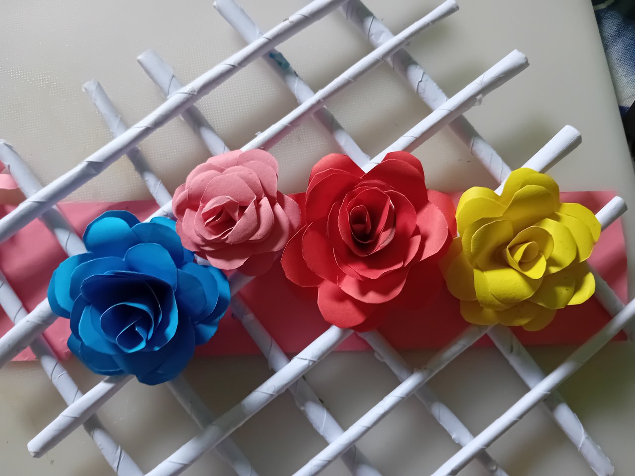 এবার আমি ফুলগুলো একটার সাথে একটা লাগিয়ে একটি গোলাপ ফুল তৈরি করে নিলাম।
