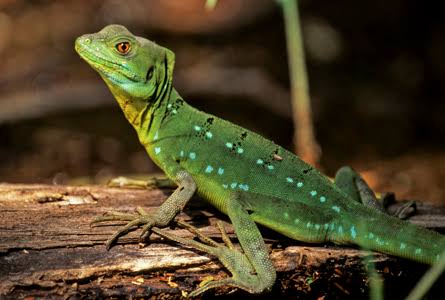 Among the basilisk specie they are the one of the largest in size. The weight of the Jesus Christ lizard is about 80g. Normally, they grow really fast while young, and their length doesn't normally exceed 92cm, i.e if their tails are measured too. As can be seen in the picture below, the adult plumed basilisk have yellowish eyes. They have a green colored body with a bit of blue spots on their final ridge.
