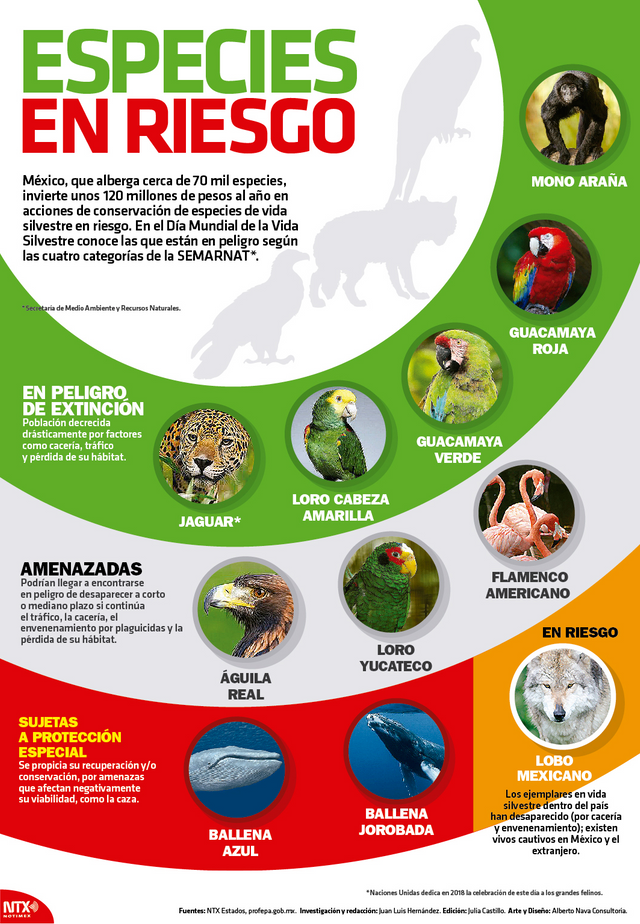 En México contamos con una gran cantidad de flora y fauna. Lamentablemente el hombre no valora la riqueza que tenemos en nuestro país y se ha encargado de perder a varias especies de animales y actualmente muchas de ellas se encuentran en peligro de extinción.