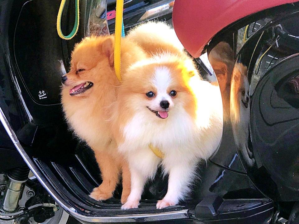 I would like to share a picture of this cute dogs traveling together with his owner on the motobike. You may see very often to transporting pet animals on the two wheel vehicles in Thailand. They were so cute and young dogs waiting for his owner. He just pop in to the 7-11 to buy some snack for them.