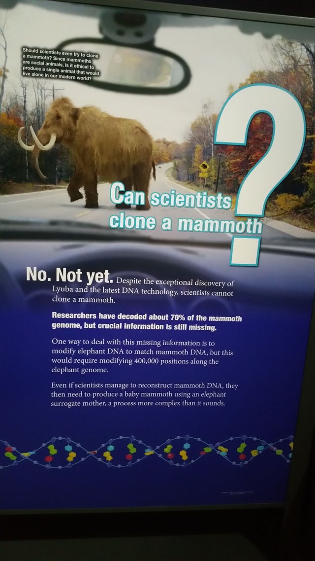We learned so much, unfortunately this is an exhibit of a deceased mastadon. Long before Ivory Tusks, and huge ears did you know what we know as elephants evolved from the Moerithereum which resembled a pig like hippopotamus? These guys lived about 35 million years ago so there's no way you & I could've been in their presence.