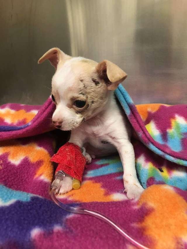 “When I met this little puppy not long after he came into our shelter, all he wanted was to be held,” Jennifer Olohan, communication and media manager for AAC, told The Dodo. “He was hooked up to an IV to deliver fluids, but despite that he kept trying to walk to the front of his kennel to get to me. I snuggled him as much as I could, being careful of his IV. He’s really just a sweetheart!”