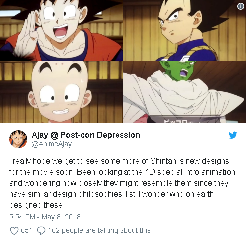 Como señala el usuario de Twitter @AnimeAjay, aunque no sabemos quién diseñó los personajes para el corto, los diseños aquí comparten "filosofías de diseño similares" con el diseño de Goku visto brevemente en el primer avance de la película dragon ball super y su el primer póster.