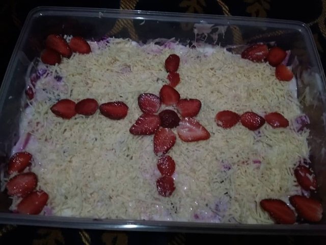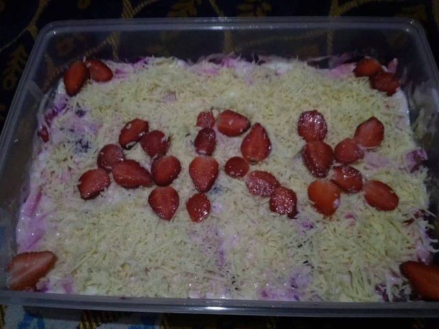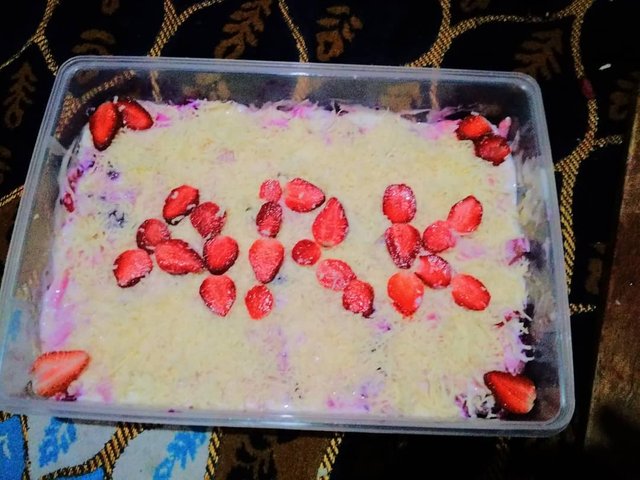 This food fruit salad is very tasty and also healthy for the body because fruits contain lots of nutrients and if we consume them every day the body will be healthy and fit. When I decorate this salad I am reminded of ARK, so I made the word ARK above this salad with an attractive strawberry fruit ..