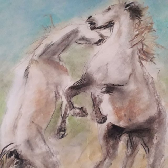 Horses, acrylic painting and chalk pastel I've done of horses :) #art #acrylicpainting #horse #share2steem #artzone #humanizesteem #chalkpastel #country