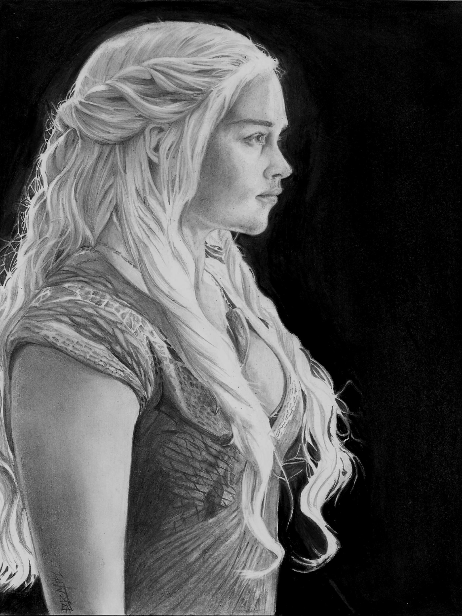 Desde hace muchísimo tiempo he querido dibujar a la madre de dragones, la verdad estaba un poco dudoso en poder dibujarla, su cabello me ponía nervioso. El episodio del domingo fue muy inesperado, entre tantas teorías que me formule, nunca pensé que Danny se convertiría en la sombra de su padre, solo diré eso para evitar spoilers, pero el final va a estar de infarto.