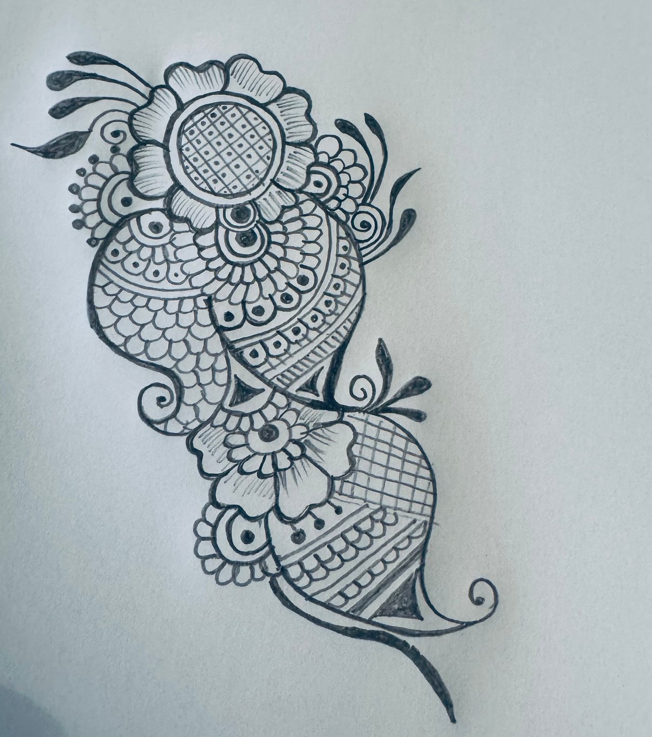 আজকে আবার হাজির হয়ে গিয়েছি একটি মেহেদি ডিজাইনের আর্ট নিয়ে।আজকের আর্টটি কিন্তু অনেক সুন্দর।বেশ কিছুটা সময় পেয়েছিলাম তাই একটু সময় নিয়েই এই আর্টটি করেছিলাম। আসলে তাড়াহুড়া করে আর্ট করা যায় না।একটু সময় নিয়ে যে কোন কাজ করলেই কাজগুলো পারফেক্ট হয়, কিন্তু প্রবলেম হচ্ছে সময়টা ম্যানেজ করা। যাইহোক হাতে পড়লে খুবই সুন্দর লাগবে এই আর্টটি। বোঝার সুবিধার্থে ধাপে ধাপে সম্পন্ন করা হলো আমার এই অংকন প্রক্রিয়াটি।আশা করছি আপনাদের ভালো লাগবে।