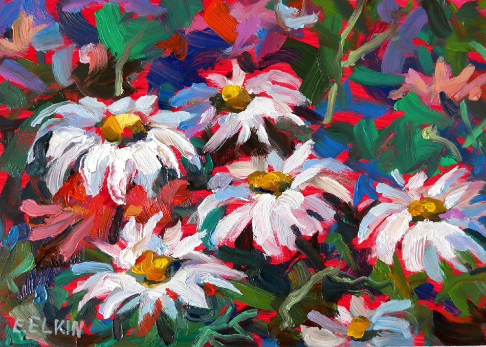Original OIl Painting - the Shasta Daisy by Elizabeth Elkin