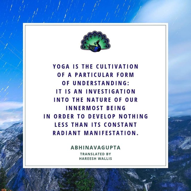 "Lo yoga è la coltivazione di una particolare forma di comprensione: è un'indagine sulla natura del nostro essere più intimo, con lo scopo di sviluppare nulla di meno che la sua costante manifestazione radiosa".