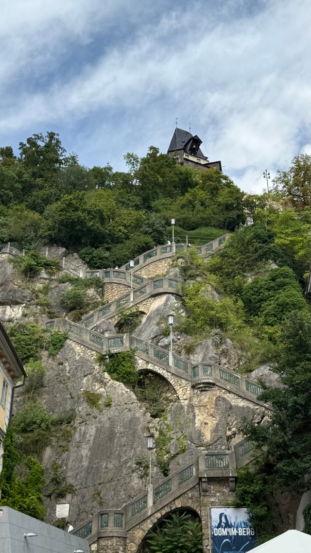 Our first stop was Schlossberg, a hill in the middle of the city topped with the iconic Clock Tower. The panoramic view over Graz was lovely – red rooftops, church spires, and green hills stretching into the distance. There are two ways to go up and three ways to descend. While we could have taken the stairs (not recommended), we opted for the funicular, which was easy and scenic.