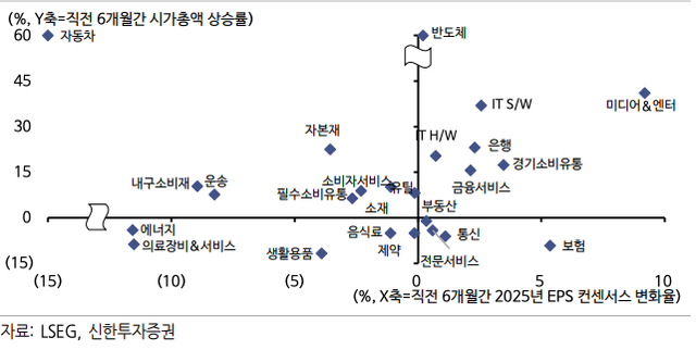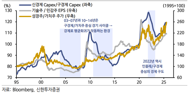 현재로서는 신경제로 주도권이 완벽히 이동한 상태이고, 실적 모멘텀이 강력해진 국면이라 보입니다.