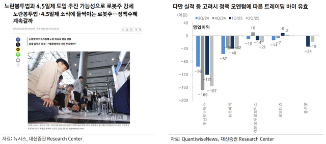 국내는 글로벌과 달리 노란 봉투법과 4.5일제 도입 추진 가능성으로 로봇주 강세