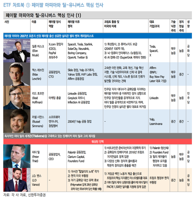 피터틸을 위시한 페이팔 마피아들이 지원하고 육성한 기업,인맥들이 현재의 공화당을 장악하고 뛰어난 기업들을 만들어내는데 혁혁한 공을 세운 것만은 틀림없는 사실인 것 같습니다.