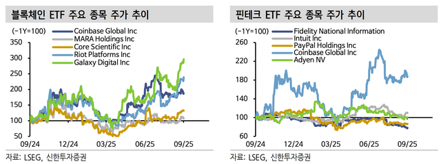 그동안의 성과는 핀테크 기업들 보다는 블록체인 기업들 위주로 편입된 ETF가 월등한 성과를 보이고 있는 것 같습니다.