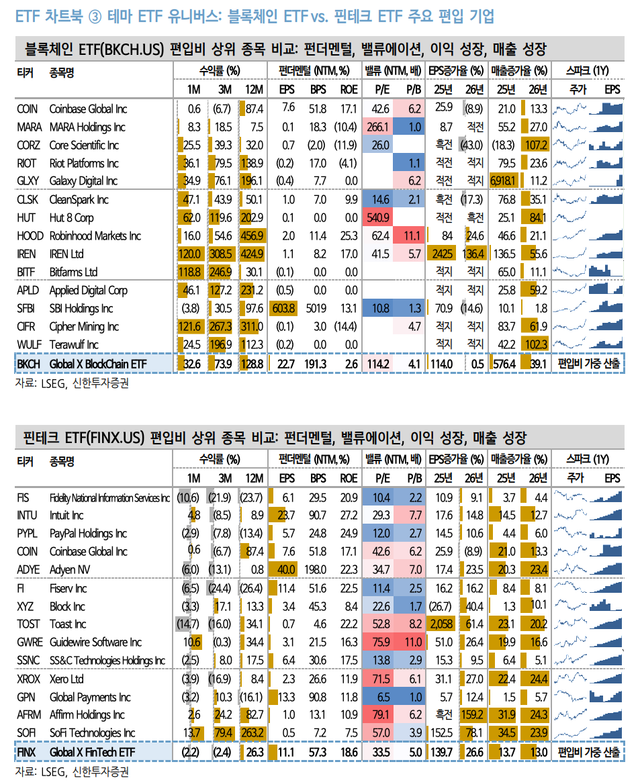 미국 상장 디지털자산 ETF 비교: 편입 종목 특징 및 펀더멘털 분석