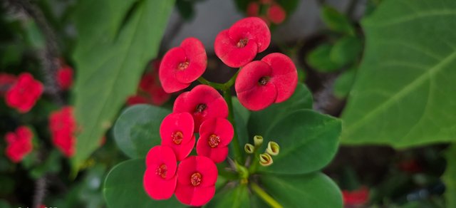 줄기의 가시가 예수님의 가시 면류관과 닮았다고 하여 Crown of thorns(가시관)이라고도 불리며, 이 때문에 고난을 간직하다라는 꽃말을 갖는다고 합니다.