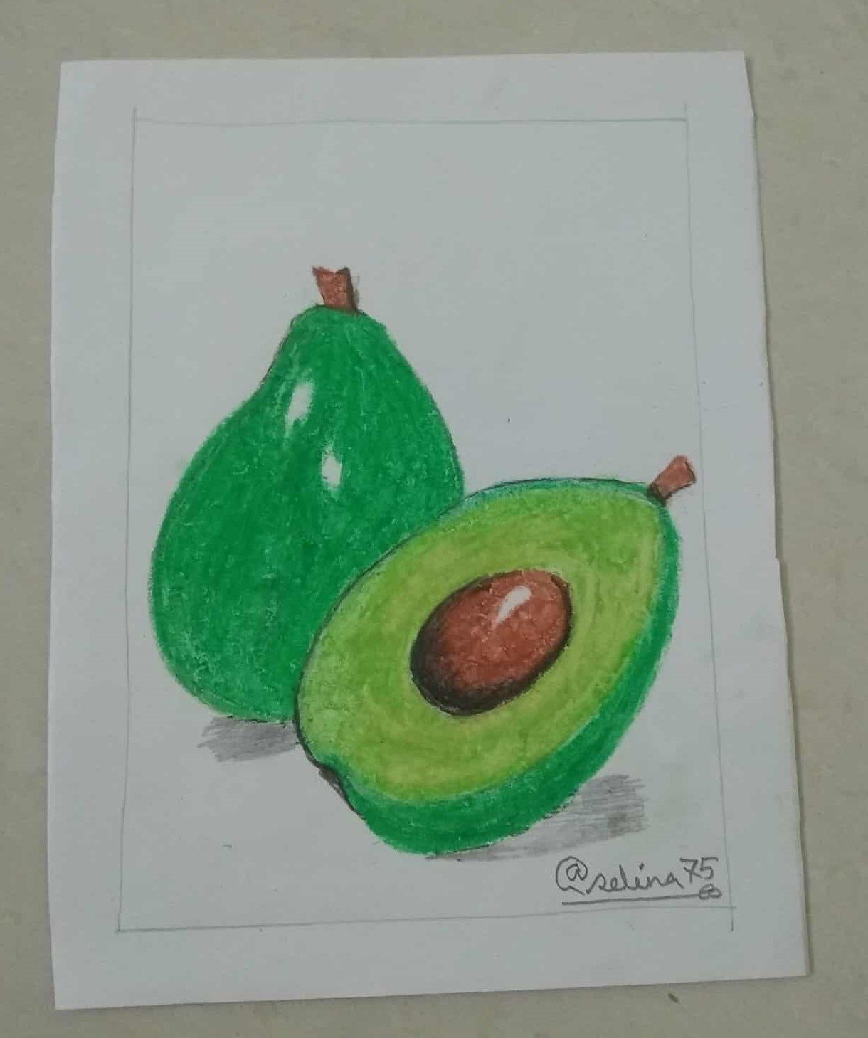 আর্টঃমোম রং দিয়ে এভোকাডো অঙ্কন।