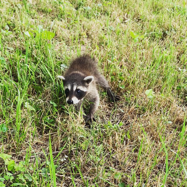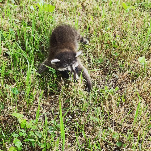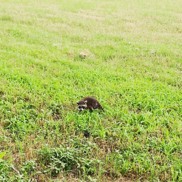 Farm adventure today! Saw a baby raccoon in the field. Poor guy was scared to death, searching for his momma. 🐾 #babytrashpanda #wildlife #babyraccoon #newmorningacres #share2steem