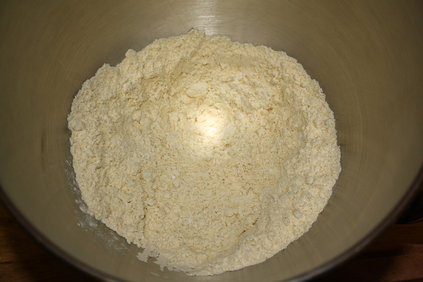In a large mixing bowl, I stirred together the flour, sugar, baking powder, and salt. The gluten-free flour was easy to swap since I got a general purpose variety that required no adjustments to the quantity. I also swapped out the white sugar for brown sugar to add that extra flavor I love so much.