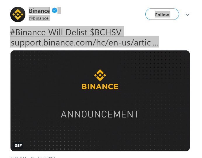 FAKE SATOSHI Vision ( BchSV) will delisted from Binancesoham-pal (48)in #bchsv • 6 years ago (edited) #bch